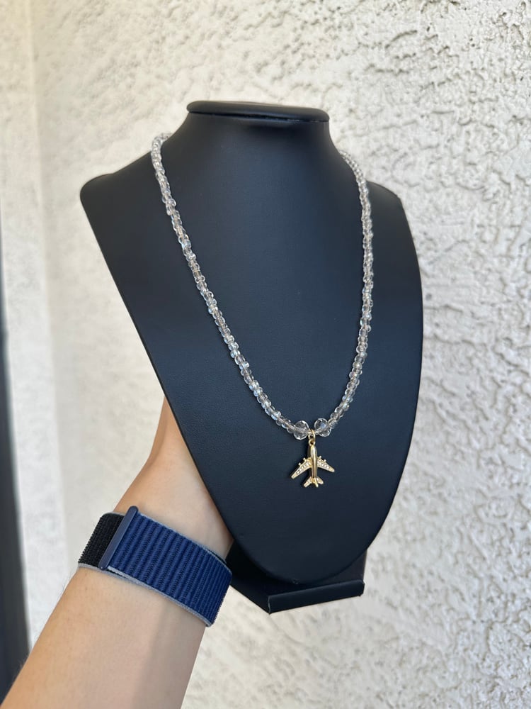 Crystal-clear beads + a golden jet charm = the perfect combo for your next adventure 🌍💫