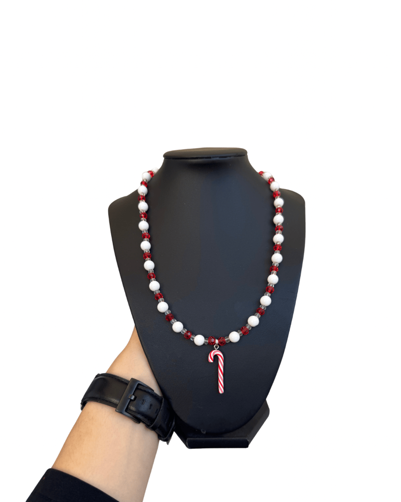 Bring the holiday spirit everywhere you go with Candy Cane Bliss — an 18in silver-wired handmade necklace featuring a sweet candy cane charm, vibrant red crystal beads, and snowy white accents. Inspired by cozy winter nights, joyful memories, and the simple magic of the season, this one-of-a-kind Studio7evin piece adds the perfect festive touch to any look.