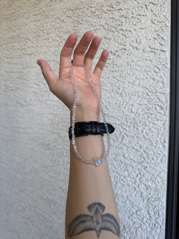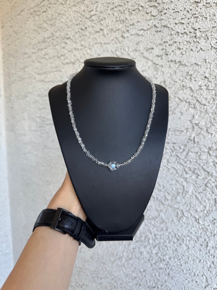 Delicate and timeless, the Crystal Bloom necklace is handcrafted with clear glass beads and silver wiring, featuring a dainty flower bead centerpiece. At 18 inches, it’s the perfect piece to add a subtle sparkle to any outfit — effortlessly versatile for both everyday wear and special occasions.