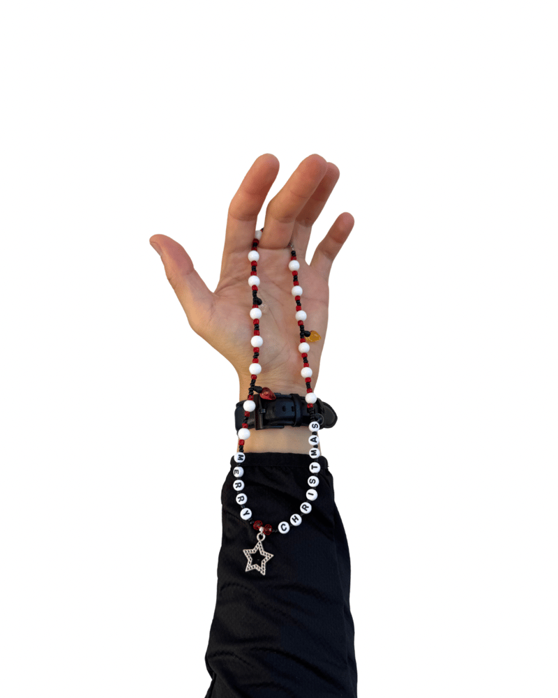 The Merry & Bright Necklace is an 18-inch, handcrafted piece made with silver wiring, festive red and white beads, colorful light bulb accents, and letter beads spelling Merry Christmas. Finished with a silver metal star pendant, this necklace captures the warmth and glow of the holiday season. Each element is thoughtfully chosen and assembled by hand, making every piece truly one of a kind.