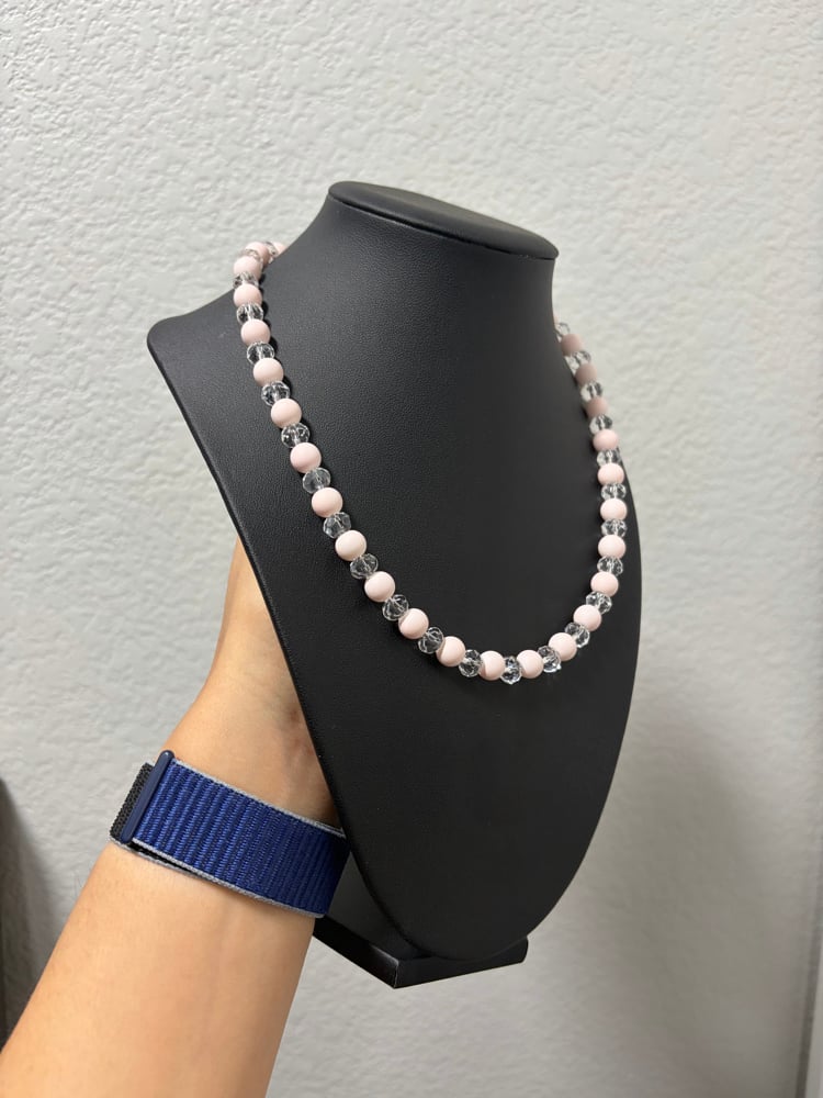 Details• 18in length• Silver wiring• Baby pink beads• Clear crystal glass beads• Handcrafted by Studio7evin